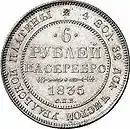 Выбор номиналов объяснялся несколькими причинами. Первая, для чеканки платиновых монет использовались те же формы, что и для чеканки серебряной монеты. Вторая причина состояла в том, что платина в тот момент была приблизительно в 6 раз дороже серебра и, наконец, удельный вес платины в два раза больше, чем удельный вес серебра.[5] Таким образом, платиновые три рубля, по форме и диаметру совпадавшие с 25 копейками серебром, имели вес в два раза и, следовательно, стоимость в 12 раз больше, чем аналогичная монета из серебра. Шестирублёвая монета была в 12 раз дороже полтинника, поэтому надпись на ней гласит «6 рублей на серебро», а для изготовления двенадцатирублёвиков использовались рублёвые формы[6].