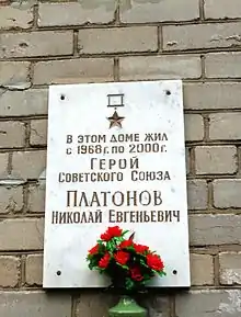 - В посёлке Монино Московской области на доме № 11 по улице Красовского, где проживал Герой Советского Союза Н. Е. Платонов, установлена мемориальная доска.