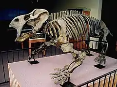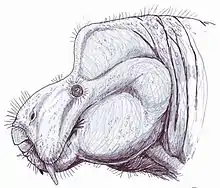 Судя по строению затылочной области, животное было приспособлено к питанию какой-то надземной растительностью, «бивни» могли служить для выкапывания из почвы сочных клубней, корней растений и прочей пищи[16][17], а также, возможно, использовались во внутривидовых сражениях между самцами[17]. Тело почти шарообразное, конечности очень мощные, хвост короткий[3]. Вели стадный образ жизни, что обосновывается нахождением остатков множества особей в одном месте[8].