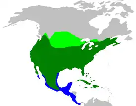 Распространена в Северной Америке от Канады и Калифорнии до Мексики. Птица длиной в 30 см. В году бывает 2—3 выводка. Является объектом спортивной охоты, однако в США существует ряд организаций, выступающих за запрещение отстрела этого вида птиц[3].