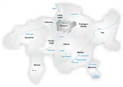 | Пагиг | 63 | 5,25 | 3928 | 1.01.2008 объединены в коммуну Санкт-Петер-Пагиг, которая 1.01.2013 вошла в состав коммуны Ароза | |