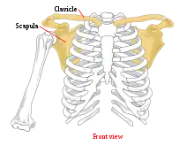 Плечевой пояс (пояс верхней конечности[1]) — совокупность костей (пары лопаток и ключиц) и мышц, обеспечивающих опору и движение верхних (передних) конечностей. У некоторых животных имеется третья парная кость плечевого пояса — коракоид. Кости плечевого пояса соединены акромиально-ключичными сочленениями. С грудной клеткой плечевой пояс соединяется посредством грудиноключичных сочленений и мышц, удерживающих лопатку, со свободной верхней конечностью — посредством плечевых суставов.[2]