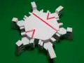 Плитка Соколара — Тейлор — это одиночная плитка, которая апериодична на плоскости, что означает, что возможны только непериодичные замощения на плоскости при разрешении вращения и зеркального отражения[1]. Плитка была первым примером одиночной апериодичной плитки, или «einstein» (игра слов, нем. ein stein означает «один камень», и так же записывается фамилия физика Альберта Эйнштейна)[2]. Базовая версия плитки — простой шестиугольник с некоторым узором для обеспечения локального правила соединения[3]. Это правило не может быть геометрически реализовано в двухмерном пространстве в виде связной плитки[2][3], однако существует несвязный вариант, для которого узор уже не нужен (на картинках узор присутствует для понимания общей структуры)[1].