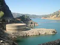 Водосброс 10 октября 2009 года. Уровень воды на 9,83 метра ниже гребня
