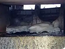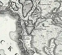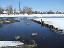 При понижении уровня открылись остатки ряжево-земляной плотины, которая была построена, а затем смыта в 1833 году. Эта плотина получила в литературе[2] название «Плотина Дестрема» по автору статьи[3].