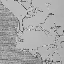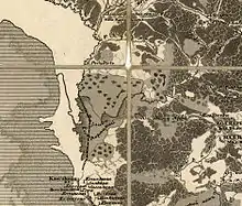 Вновь возведенное сооружение окончено было к весне 1833 года и в ту же весну подмыто и окончательно разрушено было. Вода, открыв себе выход из водохранилища, хлынула к этому прорыву, образовала промоину, шириною до 100 саженей, подмыла и унесла несколько близ стоявших строений, затопила и изрыла всю низменную местность ниже перепада и ушла в Финский залив, причём увлекла быстротою струи деревянный мост, соединявший берега разлива. Не имея в руках и не видав проекта разрушенного в 1833 году сооружения, не могу передать его размеры, но из рассказов очевидцев можно вывести заключение, что водослив имел размеры не соответственные для пропуска массы весенней воды, и не обращено было должного внимания на соединение самого сооружения с песчаными берегами. К этим недостаткам проекта, как я имел случай убедиться ныне при устройстве нового водоспуска на том же месте, должно присоединить и то важное обстоятельство, что, судя по некоторым отрытым шпунтовым и круглым сваям, длиною около 2 аршин, самое выполнение проекта, как кажется, было не вполне правильно, так как углубились сваями до твёрдого песчано-иловатого пласта земли, лежащего на 5-футовой глубине от поверхности…..
