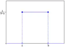 Самым простым распределением является равномерное распределение на отрезке . Для него плотность вероятности равна: