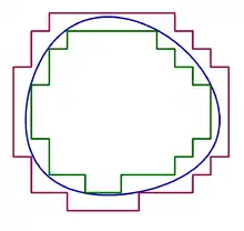 Первоначально определение площади было сформулировано для многоугольников, затем оно было расширено на квадрируемые фигуры. Квадрируемой называется такая фигура, которую можно вписать в многоугольник и в которую можно вписать многоугольник, причём площади обоих многоугольников отличаются на произвольно малую величину. Такие фигуры называются также измеримыми по Жордану[1]. Для фигур на плоскости, не состоящих из целого количества единичных квадратов, площадь определяется с помощью предельного перехода; при этом требуется, чтобы как фигура, так и её граница были кусочно-гладкими[4]. Существуют неквадрируемые плоские фигуры[1]. Предложенное выше аксиоматическое определение площади в случае плоских фигур обычно дополняют конструктивным, при котором с помощью палетки осуществляется собственно вычисление площади. При этом для более точных вычислений на последующих шагах используют палетки, у которых длина стороны квадрата в десять раз меньше длины у предыдущей палетки[5].