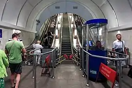 Наклонный ход, содержащий три эскалатора, расположен в северном торце станции; в 2016 году светильники наклонного хода были заменены со «световых столбиков» на «факелы».