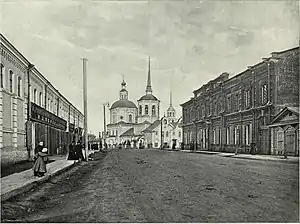 В 1785 году на площади был заложен, а в 1806 году освящен[1] каменный Благовещенский собор. Главный придел был освящен во имя Благовещения Божией Матери, а второй — во имя Введения во Храм Богородицы. На протяжении нескольких десятилетий (1820—1900) это была главная церковь Томска, и здесь, по преданию, хранилась главная томская святыня — резной иконостас с иконой Троицы ветхозаветной, которой Борис Годунов благословил первостроителей Томска.