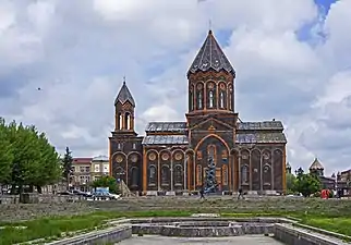 ![]() Конная статуя Вардана Мамиконяна и ратуша Гюмри на площади Вардананц | |