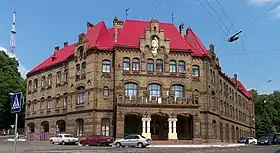На противоположных концах площади стоят два величественных сооружения — здание управления пожарной охраны и здание кукольного театра. Между ними под № 8 в 1930-х гг. построили здания торгового лицея.