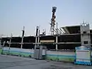 Разворованный кран над Вещевым рынком Концерна «СБС-308» (видно край крыши торговой точки), который ранее располагался на территории недостроенного ДК (ныне точки переехали в ТК «Александровский»), 1993.