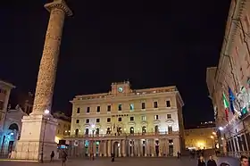 Площадь колонны была создана в конце Чинквеченто по приказу папы Сикста V. Площадь Колонны расположена с западной стороны Виа дель Корсо примерно на одинаковом расстоянии от Пьяцца дель Пополо и Площади Венеции. Площадь имеет прямоугольную форму. С севера к ней примыкает палаццо Киджи, где заседает Совет министров, а с северо-запада — палаццо Монтечиторио, где заседает Палата депутатов. С западной стороны площадь ограничена палаццо Ведекинд, где ранее был главный офис газеты «Il Tempo», а с южной стороны — церковь Санта-Мария-делла-Пьета и палаццо Феррайоли, где среди прочего находятся представительства регионов Фриули-Венеция-Джулия и Валле-д’Аоста. Вдоль Виа дель Корсо на площадь выходит фасад галереи Альберто Сорди.