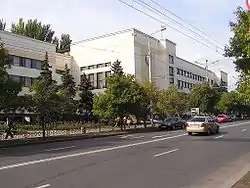 Здание, в котором располагается концертный зал Донецкой областной филармонии имени Сергея Прокофьева строилось как зеркальная копия здания Ворошировского райисполкома — эти здания похожи в плане, но отличаются оформлением[11]. Здание построено в 1930-е годы Южжилстроем и называлось «здание госучреждений». Его спроектировал архитектор Людвиг Иванович Котовский. После Великой Отечественной войны здание госучреждений значительно перестроили[3].