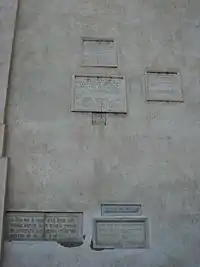 С восточной стороны на площадь выходит фасад Санта-Мария-сопра-Минерва, единственной готической церкви Рима. Справа от входа в церковь на фасаде установлены таблички, показывающие уровень, которого достиг Тибр при наводнениях с 1422 по 1598 год. Окрестности площади Минервы являются одним из самых низких мест Рима, поэтому при наводнениях уровень воды не спадал здесь в течение долгого времени.
