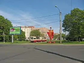 В 1969—1996 годах площадь застраивалась. На двух высотных домах имеются памятные надписи — на одном «1941», на другом — «1945». Оформление площади посвящено подвигу солдат в годы Великой Отечественной войны. Середину площади занимает большой газон, деревья и трамвайный Т-образный перекрёсток.