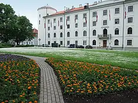 Наконец, завершает ансамбль Замковой ещё одно примечательное строение, предназначенное для нужд рижского Петровского лицея (впоследствии — Рижская губернская гимназия), возведённое в 1787 году по проекту архитектора Матиаса Шона взамен предыдущего, также менее вместительного, на Замковой площади, 2[1]. Ныне там располагается Музей литературы и музыки.