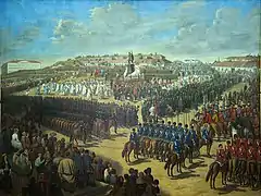 В 1841 году улицам и площадям Новочеркасска были даны официальные названия. Площадь гостиного двора получила название Александровская в честь посещения «Войска Блаженной памяти Государем Императором Александром Благословенным». В мае 1853 года на площади состоялась церемония открытия памятник атаману Платову (скульпторы А. А. Иванов, Н. А. Токарев, П. К. Клодт).