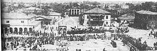 Рядом с площадью стояло здание Земской Управы (ныне средняя школа № 2)[1]. С трёх других сторон площадь окружали магазины — «Бакалейные и гастрономические товары А. К. Кушнаревой», «Галантерейные товары Ш. Меркуловича», магазины Д. Ноткина «Мебель и зеркала», Я. Кумана и гостиница «Венеция»[1].