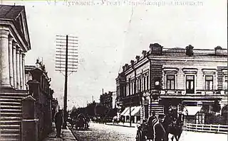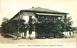 Напротив Успенской церкви, на другой стороне площади, располагалось двухэтажное здание Славяносербской земской управы.