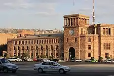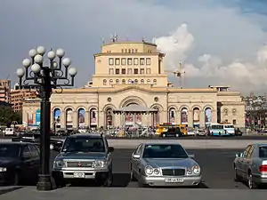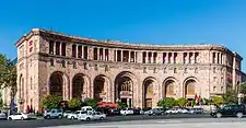 Строительство здания велось в период с 1933 по 1956 год по проекту Марка Григоряна и Эдуарда Сарапяна.[7] До 2016 года в здание находилось Министерство транспорта и коммуникаций.[24] Правительство Армении объявило о намерении приватизировать здание в 2016 году, но пока не сделало этого. |