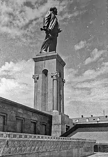 Семиметровая статуя Владимира Ленина, советского лидера, была возведена на площади Сергеем Меркуровым 24 ноября 1940 года.[25][26] Статуя была установлена на одиннадцати метровом постаменте и была направлена в сторону будущего здания Национальной галереи. Статуя «вскоре приобрела признание, как великое произведение монументального искусства».
