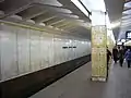 Станция колонного типа из сборных железобетонных элементов. Основная тема оформления — белорусское народное творчество. В покрытии конструкции применен сборный железобетонный декоративный элемент с наклонными ребрами, ассоциирующимися с издавна применяемыми в народном зодчестве стропилами крыш. Колонны перронного зала облицованы керамикой золотистого цвета со стилизованными рисунками народного орнамента. В такой же керамике выполнены и панно над спусками в перронный зал из кассовых залов вестибюлей. (авт. А. Зензин, М. Пирогов, Ю. Богушевич, Г. Жарин, Л. Толбузин,В. Чурило)