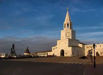 Ранее на площади впритык к Спасской башние также находилась военная церковь Спаса Нерукотворного Образа в красно-черных цветах, которая была снесена. В советский период на этом месте некоторое время была композиция с символикой 10-летия образования ТАССР.