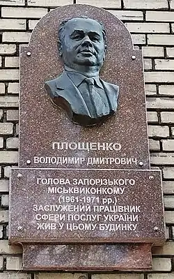 ![]() Мемориальная доска В. Д. Площенко в Запорожье | |