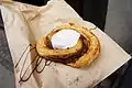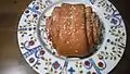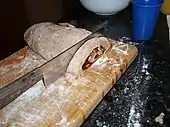 Другой способ разделки: тесто разделяют на куски, раскатывают их в пласты, смазывают маслом и посыпают сахаром. Каждый пласт сворачивают отдельным рулетиком и складывают пополам. Надрезают рулетик вдоль его сгиба, оставляя некоторое расстояние для соединения половинок. Раздвигают половинки в стороны, придавая плюшке уплощённую форму[3].