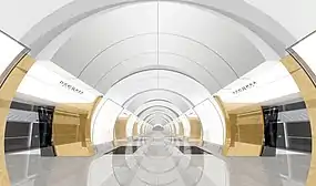 Станцию планируется построить по типовому проекту. Цветовая гамма — золотисто-чёрная. В целях безопасности пассажиров на станции должны были быть установлены платформенные раздвижные двери[14]. Однако от стеклянных перегородок отказались ввиду некоторых неудобств их использования.