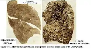 Пневмокониоз (лат. pneumon — лёгкие и konia — пыль) — группа заболеваний лёгких (необратимых и неизлечимых)[2], вызванных длительным вдыханием производственной пыли и характеризующихся развитием в них фиброзного процесса; относятся к профессиональным болезням. Встречаются у рабочих горнорудной, угольной[3], машиностроительной и некоторых др. отраслей промышленности.
