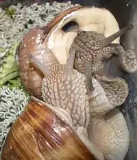 У виноградной улитки при нормальных условиях пневмостом открывается и закрывается приблизительно один раз в минуту. Дыхательные движения учащаются при насыщении воздуха углекислотой.