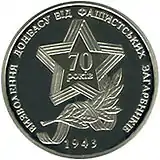 - Монета в 5 гривен «70 лет освобождения Донбасса от фашистских захватчиков», сайт НБУ (укр.)