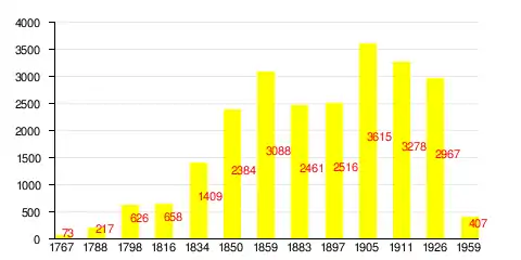 | 1767 | 1788 | 1798 | 1816 | 1834 | 1850 | 1859 | 1883 | 1897 | 1905 | 1911 | 1926 | 1959[3] |