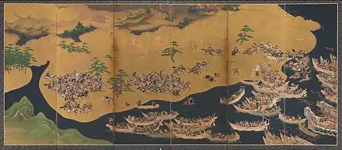 Император Антоку бросается в воду