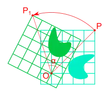 где — угол поворота, а центр вращения выбран в начале координат.
