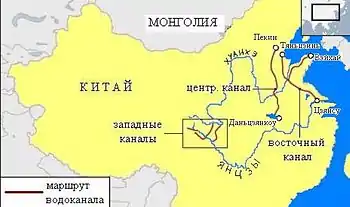 - центральный канал от верховий реки Ханьшуй (приток Янцзы) до Пекина и Тяньцзиня