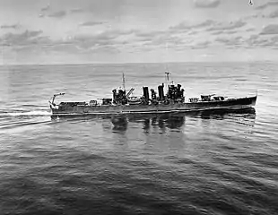 «Юта» незадолго до гибели. Вид с кормы. Видны щиты, прикрывающие зенитные орудия.