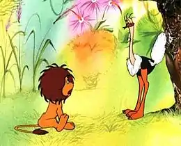 Мультфильм про любопытного и глупого львёнка, который гонялся за страусом.