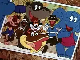 | Роли озвучивали: | Раиса Мухаметшина — Дюдюка Барбидокская Зинаида Нарышкина — Обезьянка / Черепаха Рогволд Суховерко — Слон Клара Румянова — Тигрёнок / Лягушонок Ирина Воронцова — вокал/ Крокодил Александр Маркелов — Попугай / Бегемот |
