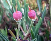 Слева направо: молодые побеги; взрослый побег; цветущее растение; группа цветущих растений; плоды. | ||||||||||