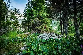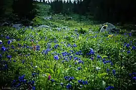 В период с июня по август можно встретить пышное цветение ириса, купальницы (или жарки) и ряда других высокогорных растений. Часто встречается можжевельник обыкновенный и бадан толстолистный.