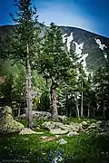Вблизи озера произрастают в небольшом количестве хвойные породы — лиственница, сосна, кедр.