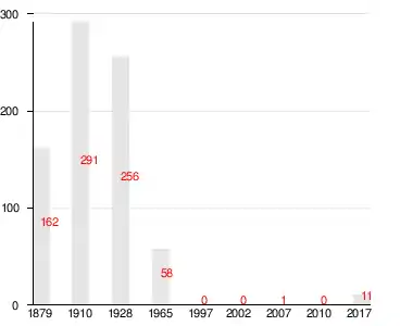 Число жителей деревни по семейным спискам 1879 г.: 66 м. п., 96 ж. п.; по приходским сведениям 1879 г.: 82 м. п., 102 ж. п.[2]