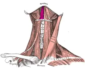 - Р. Д. Синельников, Я. Р. Синельников. Мышцы и фасции шеи // Атлас анатомии человека. — 2-е. — М.:: Медицина, 1996. — Т. 1. — С. 232—234. — 344 с. — 10 000 экз. — ISBN 5-225-02721-0.