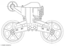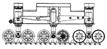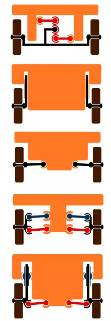 - Сблокированная (связанные друг с другом пара-тройка колёс одного борта)