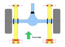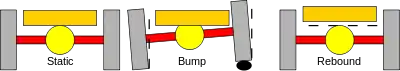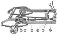 - Передача сил и моментов от колёс на кузов (раму) здесь может осуществляться таким упругим элементом как рессора, а в случае применения иных типов упругих элементов — рычажными механизмами разнообразных кинематических схем.[7]