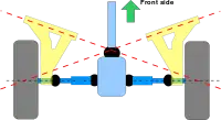 Для переднеприводного автомобиля положительный кастер намного менее актуален, так как передние колёса уже не свободно катятся, а тянут машину за собой, и небольшое его положительное значение сохраняют лишь для большей устойчивости при торможении.